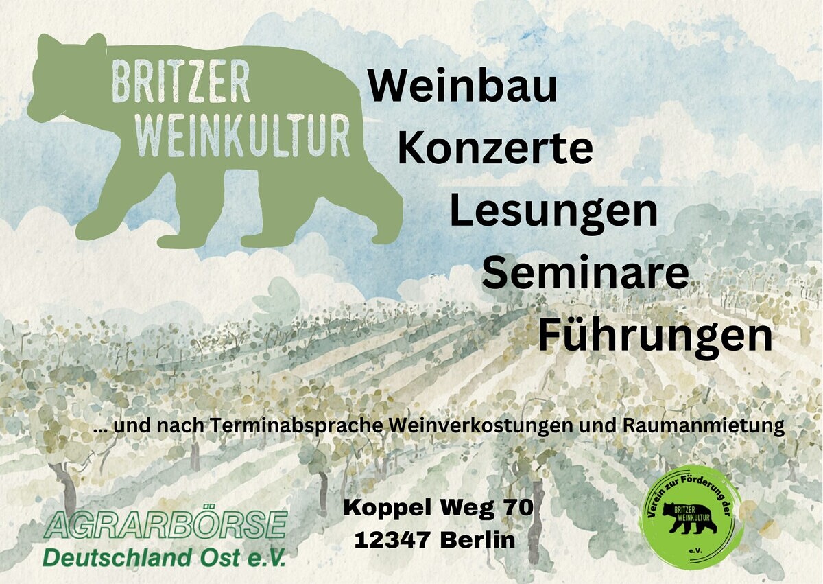 Die Britzer WeinKultur befindet sich im Neuköllner Ortsteil Britz. Vor 650 Jahren wurde das Dorf Britz urkundlich das erste Mal erwähnt. Britzer Vereine, Initiativen und Institutionen haben ein aus diesem Anlass umfangreiches Programm erstellt und laden dazu herzlich ein.